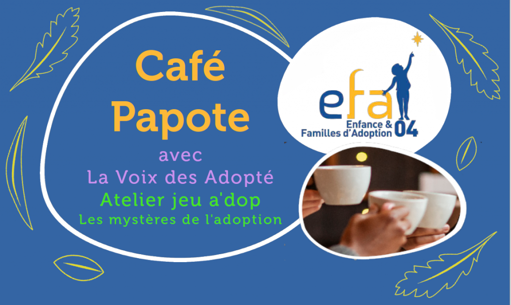 Pour le premier café papote de l’année 2026, le 29 mars, nous accueillerons la voix des adoptés, association créée en 2005, elle est présente dans plusieurs antennes en France et s’appuie sur les compétences pluridisciplinaires de plus de cinquante bénévoles adoptés et engagés.
